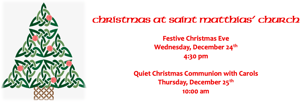 Christmas 2025 Schedule Posted on December 11, 2025 by Saint Matthias' Church Share this: Click to share on X (Opens in new window) X Click to share on Facebook (Opens in new window) Facebook Like Loading...